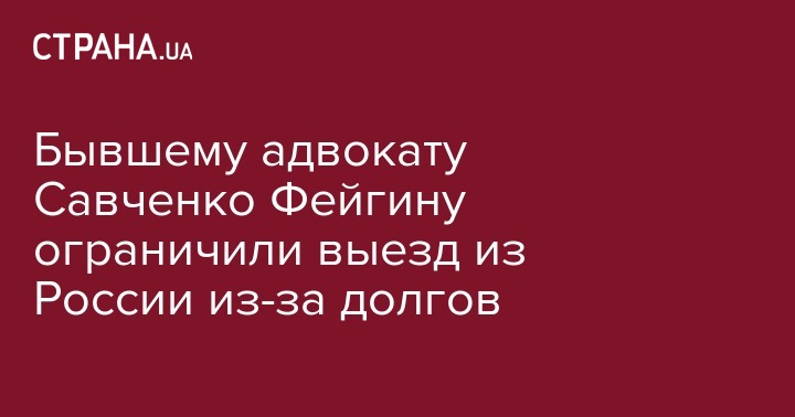 Бывшему адвокату Савченко Фейгину ограничили выезд из России из-за долгов