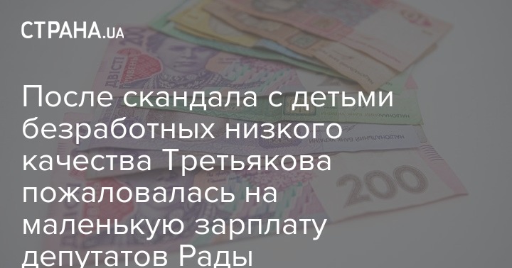Народный депутат от фракции "Слуга народа" Галина Третьякова, которая заявила, что у безработных рождаются дети "очень низкого качества", считает что зарплата депутатов Верховной Рады Украины, маленькая и ее не хватает для качественного обеспечения работы членов парламента.