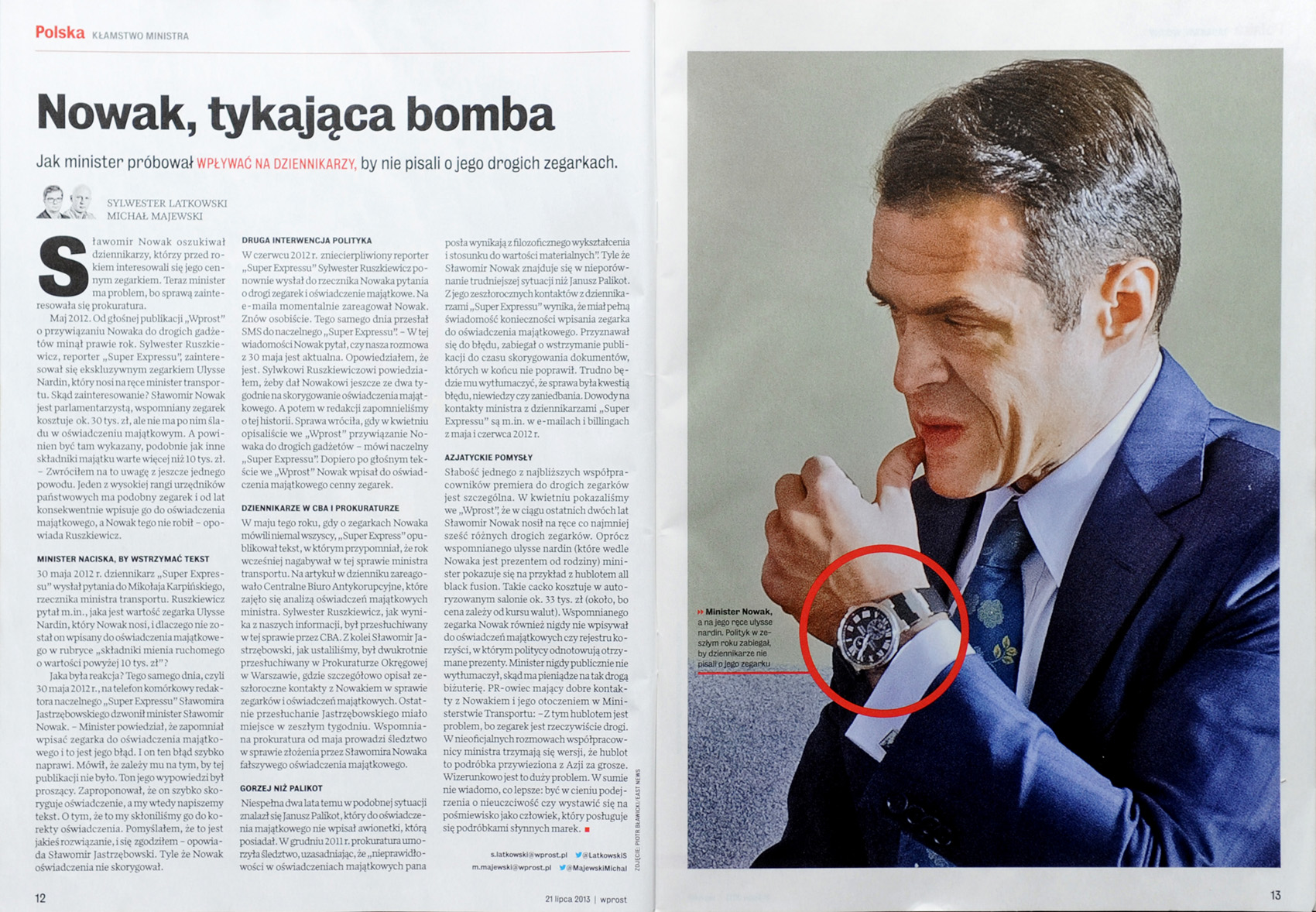 Часы, что интересно, заметили журналисты на одной из пресс-конференций. После чего и начался скандал. После публикаций польских СМИ на эту тему вокруг Новака родился мем "Тикающая бомба".