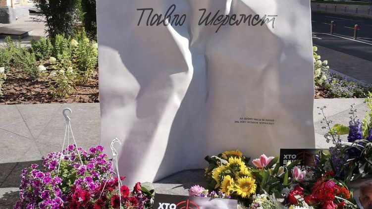 В четвертую годовщину убийства журналиста Павла Шеремета в Киеве открыли памятник в его честь. Фото: Страна