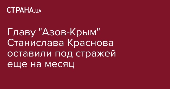Районный суд  Шевченсковского района Киева продлил арест главы гражданского корпуса "Азов-Крым" Станислава Краснова, подозреваемого в терроризме и шпионаже в пользу российских спецслужб, до 18 сентября. Об этом говорится в сообщении на странице группы поддержки Краснова в социальной сети Facebook, передают "Украинские новости".