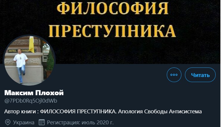 "Страна" нашла Твиттер-аккаунт вероятного террориста. В нем он действительно именует себя как "Максим Плохой" и заявляет, что он автор книги "Философия преступника". Его аккаунт создан совсем недавно - в июле.