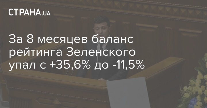За 8 месяцев баланс рейтинга Зеленского упал с +35,6% до -11,5%