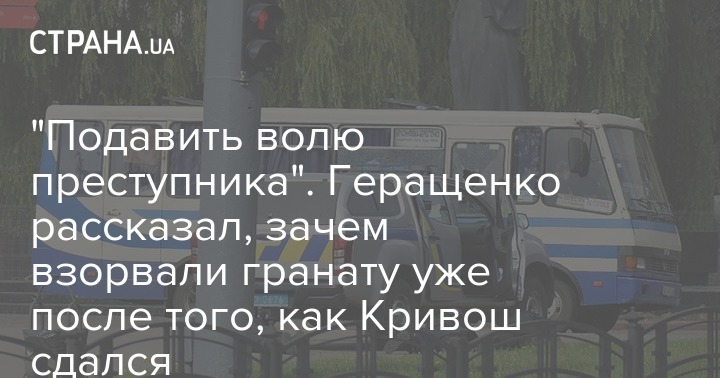 Замминистра внутренних дел Антон Геращенко объяснил, зачем силовики взорвали гранату уже после того, как луцкий террорист Максим Кривош сдался правоохранителям. По его словам, это было сделано для того, чтобы "подавить волю преступника".