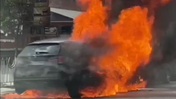 В центре Киева прямо на дороге загорелся автомобиль. Видео