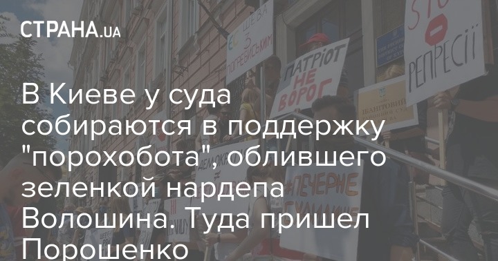 В Киеве под зданием Печерского суда собираются сторонники "Европейской солидарности", чтобы поддержать "порохобота" Александра Погребицкого, который вчера облил зеленкой депутата Олега Волошина.