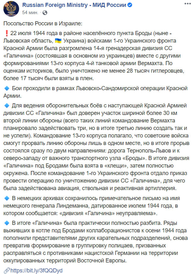 22 июля - годовщина ликвидации СС "Галичина" под Бродами. Архивное фото: facebook.com/MIDRussia