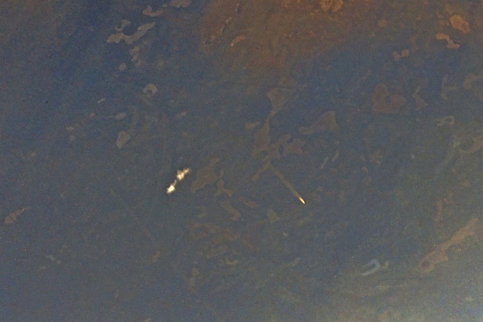 Фото запуска ракеты-носителя "Союз-2.1а" из космоса, фото: twitter.com/ivan_mks63