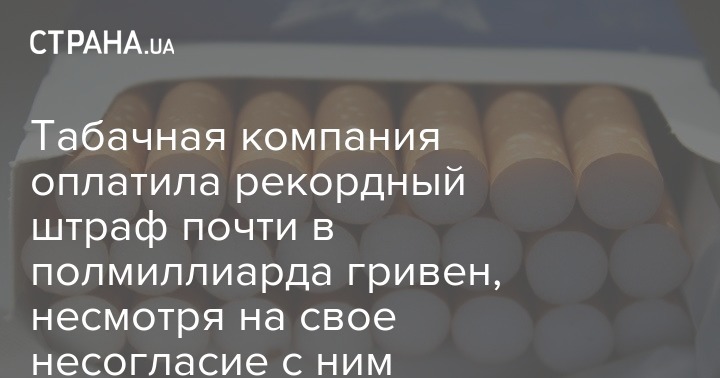 Табачная компания оплатила рекордный штраф почти в полмиллиарда гривен, несмотря на свое несогласие с ним