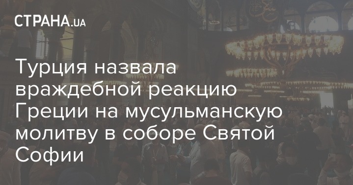 Представитель МИД Турции Хами Аксоя назвал враждебной реакцию Греции на первую за 86 лет мусульманскую молитву в соборе Святой Софии, который власти Турции объявили мечетью.