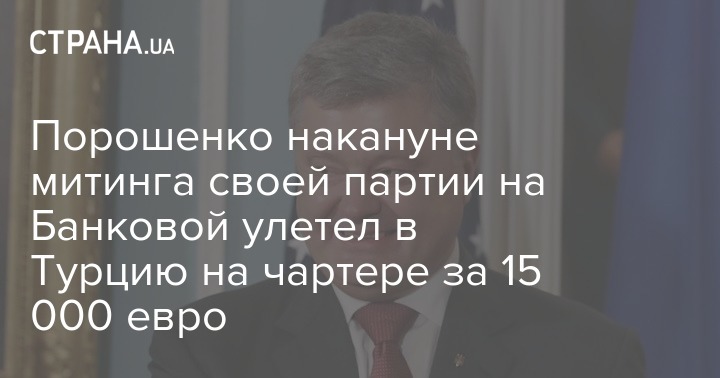Порошенко улетел на отдых в Турцию накануне митинга своей партии на Банковой