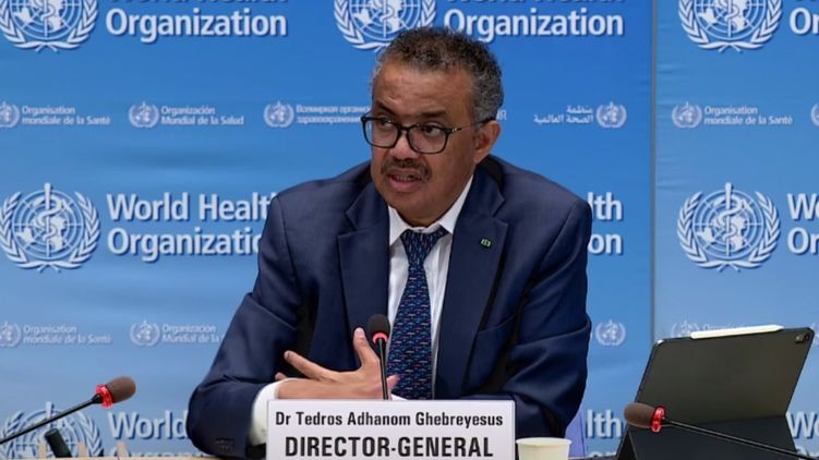 Тедрос Гебриесус заявил, что за последние шесть недель общее число заболевания Coid-19 практически удвоилось. Кадр из видео