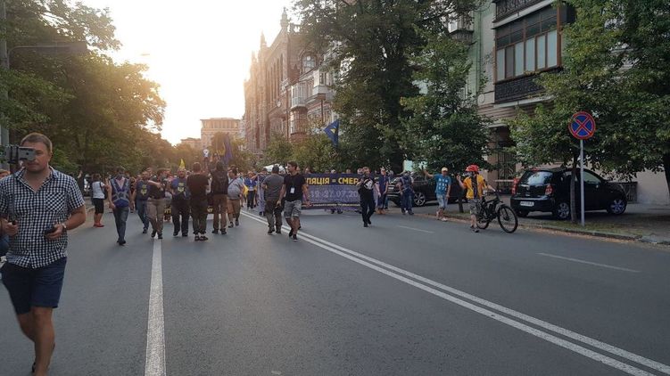 В пути участники скандируют кричалки "Ермак-мудак", "Нет капитуляции" и другие.
