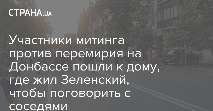 Участники митинга против перемирия на Донбассе пошли к дому, где жил Зеленский, чтобы поговорить с соседями