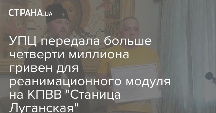 Украинская православная церковь передала 270 тысяч гривен для закупки медикаментов и медицинского оборудования для реанимационного модуля на КПВВ "Станица Луганская". Средства пойдут на оказание неотложной помощи людям, которые испытывают проблемы со здоровьем на переходе КПВВ.