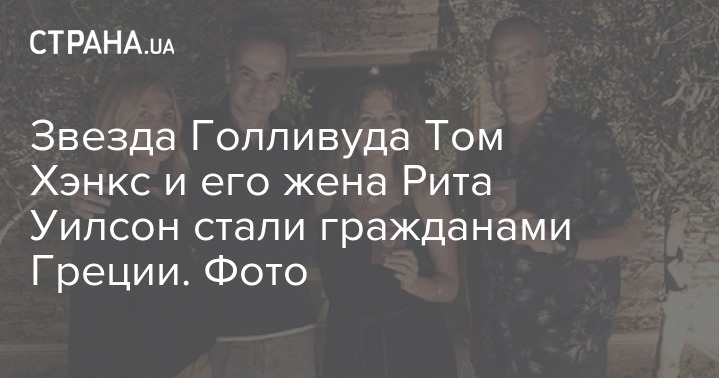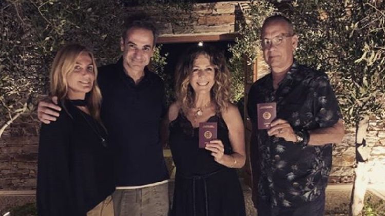 Известный американский актер Том Хэнкс и его жена Рита Уилсон приняли греческое гражданство. Они получили паспорта и сфотографировались вместе с премьер-министром Греции Кириакосом Мицотакисом и его женой.