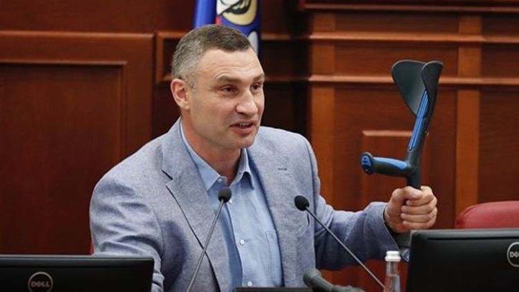 Мэр Киева Виталий Кличко пришел на сегодняшнее заседание Киевсовета на костылях. По его словам, в выходные он надорвал сухожилие на ноге.