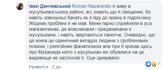 Священник также написал подробности истории в комментариях под постом. По его словам, с ним это происходит не в первый раз: тогда толкнули на землю и немного побили. В этот раз нападающая вела себя агрессивно, выкрикивала о пророке Мухаммеде. Сам отец Иоанн не пострадал: забежал в храм и там ждал полицию, которую вызвал.