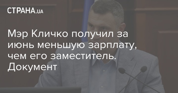 Мэр Киева Кличко получил за июнь зарплату меньше, чем его заместитель. Документ: Украинские новости