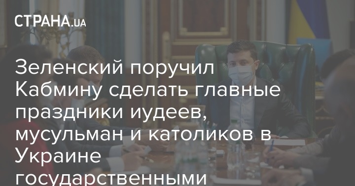 Президент Украины Владимир Зеленский поручил Кабинету министров рассмотреть вопрос предоставления государственного статуса отдельным религиозным праздникам. Среди них мусульманские Рамазан-Байрам и Курбан-Байрам, иудейские Песах, Рош-ха-Шана и Ханука, а также Пасха христиан западного обряда.