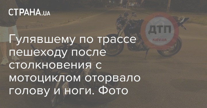 Отмечается ,что инцидент произошел возле поворота на Вышгород. Пешеход прогуливался по обочине дороги, однако в какой-то момент перешел на проезжую часть. Неизвестно, почему водитель мотоцикла не заметил гуляющего, однако от удара на большой скорости пешехода отбросило примерно на 30 метров, ему оторвало голову и ноги - смерть наступила мгновенно.