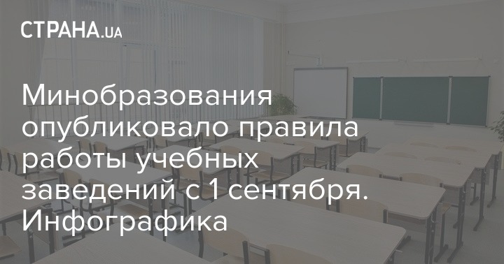 Министерство образования и науки Украины опубликовало инфографику с рекомендациями Минздрава касательно работы школ, техникумов и вузов с 1 сентября в условиях коронавирусного карантина.