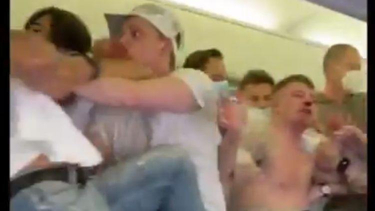 Туристы подрались в самолете из-за маски. Скриншот из видео