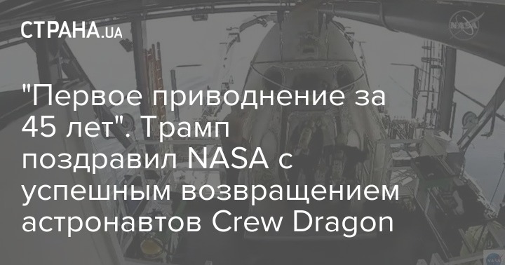 "Первое приводнение за 45 лет". Трамп поздравил NASA с успешным возвращением астронавтов Crew Dragon