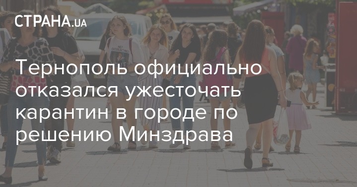 Как сообщалось, власти Тернополя отказались ужесточать карантин в городе по требованию Минздрава. В горсовете считают, что город отнесли к "красной зоне" коронавирусного карантина безосновательно. Ранее такое же решение приняли и в Луцке.