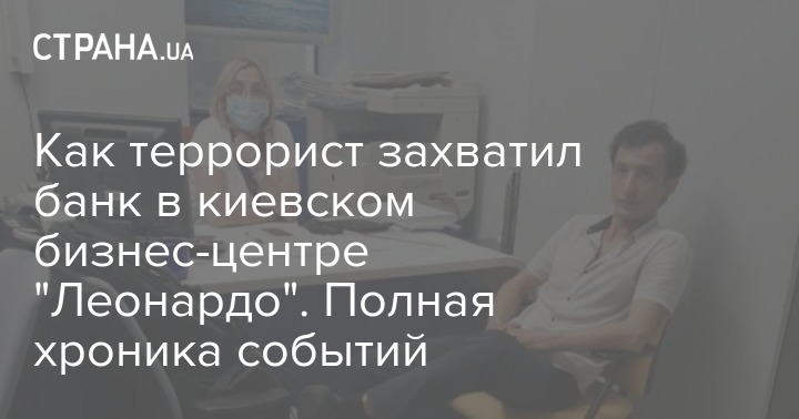 В понедельник, 3 августа, в столичном бизнес-центре "Леонардо" на пересечении улиц Богдана Хмельницкого и Владимирской террорист захватил заложников. Он заявил, что у него в рюкзаке бомба, и потребовал прямой эфир на украинских телеканалах. В это время в заложниках оставалась начальник отделения банка.
