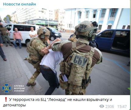 15:50 У террориста из БЦ "Леонардо" не нашли взрывчатку и детонаторы, - сообщают "Новости онлайн".