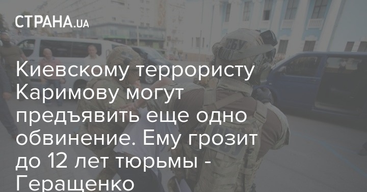 Киевскому террористу Каримову могут предъявить еще одно обвинение. Ему грозит до 12 лет тюрьмы - Геращенко