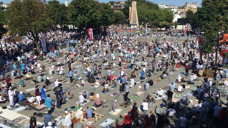 Напомним, 24 июля в соборе Святой Софии в Стамбуле (Айя-София) прошел первый за минувшие 86 лет официальный намаз после того, как глава Турции объявил о передаче собора мусульманам. За несколько часов до намаза район был полностью перекрыт и оцеплен полицией.