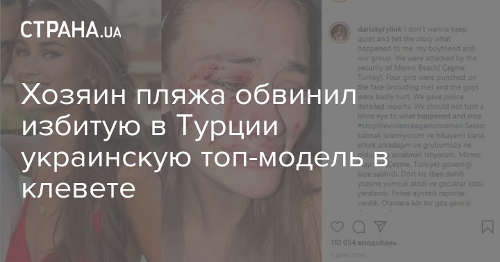 Владелец пляжа Momo в Турции Бурак Бешер, на котором была избита украинская топ-модель Дарья Кирилюк, обвинил девушку в клевете.