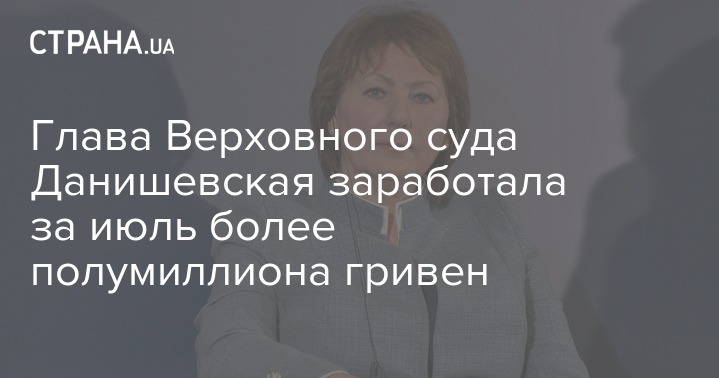Глава Верховного суда Данишевская заработала за июль более полумиллиона гривен