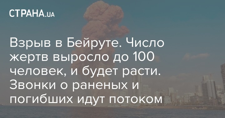 Взрыв в Бейруте. Число жертв выросло до 100 человек, и будет расти. Звонки о раненых и погибших идут потоком
