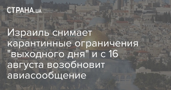 В Израиле Комиссия по борьбе с коронавирусом приняла решение об ослаблении карантинных мер в стране, которые действовали в выходные дни. В частности, это касается работы магазинов и торговых центров по субботам. Также власти приняли решение возобновить международное авиасообщение с 16 августа.