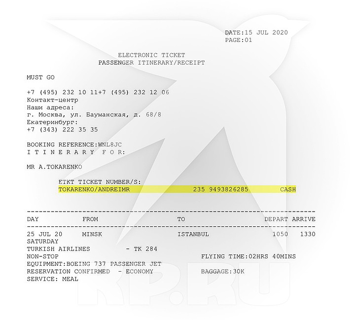 Вылетать из Минска в Каракас должны были 25 июля. Миляеву на электронную почту пришли копии билетов на самолет. Авиабилеты выглядели как приобретенные через интернет-сайт фирмы Must Go, зарегистрированной в Киеве, однако с указанием на билетах реквизитов туристической компании Coral Travel.