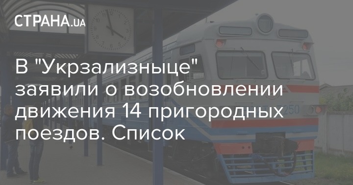 В "Укрзализныце" заявили о возобновлении движения 14 пригородных поездов. Список