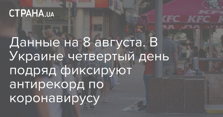 Данные на 8 августа. В Украине четвертый день подряд фиксируют антирекорд по коронавирусу