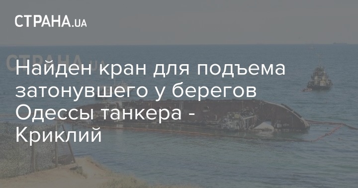 Найден кран для подъема затонувшего у берегов Одессы танкера - Криклий