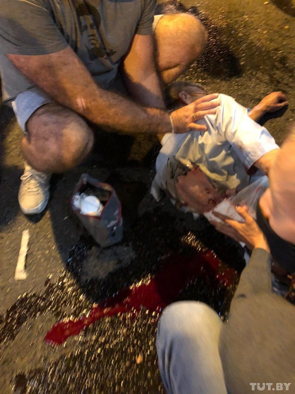 23:35 Один из участников на проспекте Пушкина получил травму головы в результата разрыва шумовой гранаты. Первую помощь ему оказывали сами протестующие - передает "Спутник Беларусь".