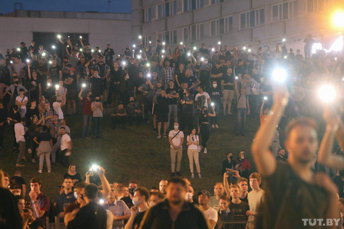 10 августа акции начались с 20:00. В Минске протестующие передвигались небольшими группами, чтобы измотать спецназ, и блокировали дороги, чтобы не подъехала спецтехника и автозаки. Точки сбора - станции метро и любые площади вблизи домов, где живут противники Лукашенко.
