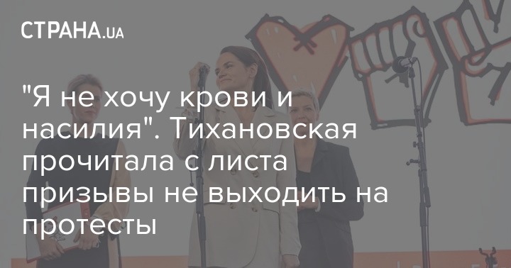 "Уважаемые граждане Республики Беларусь! Я, Светлана Тихановская, благодарю вас за участие в выборах главы государства. Народ Беларуси сделал свой выбор. С благодарностью и теплотой я обращаюсь ко всем гражданам, которые поддерживали меня все это время. Белорусы, я призываю вас к благоразумию и уважению закона. Я не хочу крови и насилия, я прошу вас не противостоять милиции, не выходить на площади, чтобы не подвергать свои жизни опасности. Берегите себя и своих близких!" - сказала Тихановская.