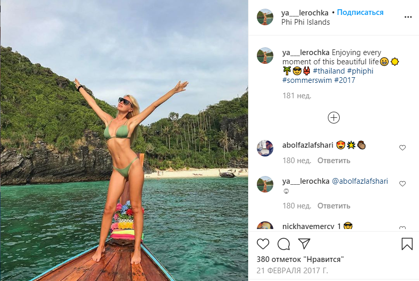 Валерия вела блог в Instagram под ником ya___lerochka, где 1 414 подписчиков. Здесь она делилась фотографиями своих путешествий. Она побывал на Ибице, Бали, Майорке, в Турции, Вьетнаме, Греции, Франции, Испании, Таиланде, Индонезии.