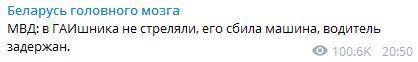 20:44 ГУВД Мингорисполкома назвало фейком новость о стрельбе в Минске в сотрудника ГАИ, - передает портал TUT.BY.