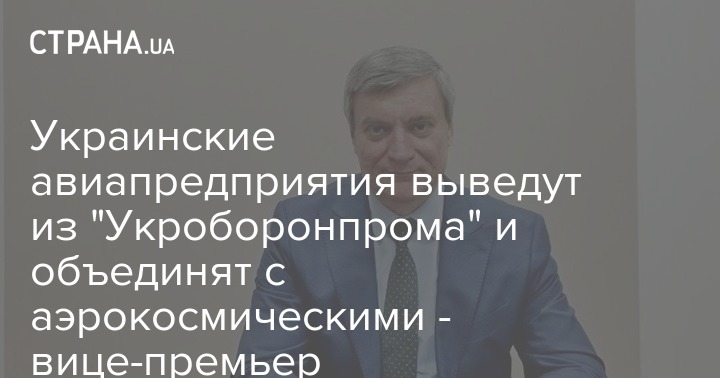 "Мы предусматриваем, что трансформация государственного концерна "Укроборонпром" будет заключаться (в том), что мы реально получим две государственные управляющие холдинговые компании: одна из них будет сосредоточена на функциях оборонных отраслей, а авиацию мы вместе с космосом хотим перевести в государственную холдинговую компанию "Аэрокосмические системы Украины", - сказал вице-премьер.