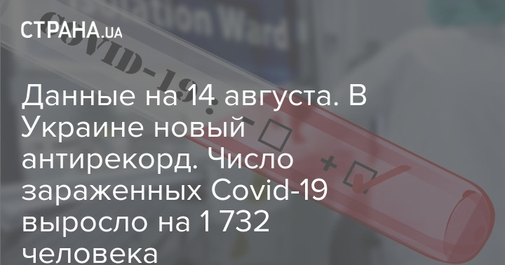 По состоянию на утро пятницы, 14 августа, коронавирус в Украине подтвердился еще у 1 732 человек. Это новый антирекорд (предыдущий в 1 592 зараженных за сутки был отмечен накануне - Ред.).