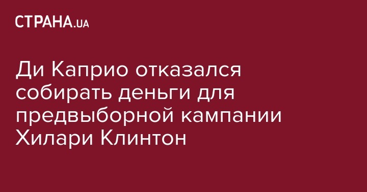 Голливудский актёр Леонардо Ди Каприо отказался участвовать в сборе средств для предвыборной кампании кандидата в президенты США от Демократической партии Хилари Клинтон, сообщает малазийская газета The Hindu.