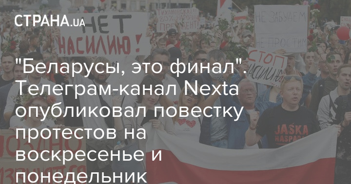 "Беларусы, это финал". Телеграм-канал NEXTA анонсировал масштабные акции протеста против Лукашенко. Скриншот: NEXTA в Телеграм